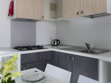 Ausgestattet mit Küche mit Waschbecken, Kuhlschrank, Gaskochstelle