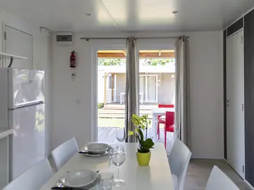 Wohnzimmer mit Sofa, Tisch und Stühlen